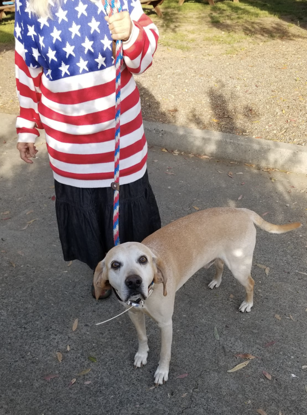 Camille never caught the dog or owner’s name, but she wisely recognized the unusualness of the dog’s color and seized the opportunity to snap his photo.