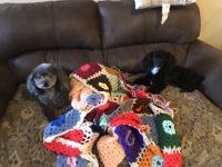 As adults, some describe a “blue” Poodle as “ashy” colored, too light to be black, too dark to be silver. True blue Poodles have black points and dark eyes (which is in the standard regardless of the dog’s coat color). We’ve also come across the opinions of some fanciers who feel that blues have a better coat texture than silvers which often have a “cottony” textured coat.