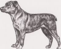 I have always been interested in ancient breeds, wether extinct ore still existent. I did an article for a newsletter about the “Matin Belge” when i discovered facts in an old encyclopedia and made a drawing after a small and not very clear picture. To my surpize i learned that the breed was registered in army circles and especially bred for the purpose of pulling light artillery carts. In the book were also the official essentials of the breed, in Flemish (!) so impossible to translate without loosing the caracteristic style of the languige. The breed, or X breds were also seen regularly in the south region of the Netherlands used as a cart dog by peddlars and milkmen.
