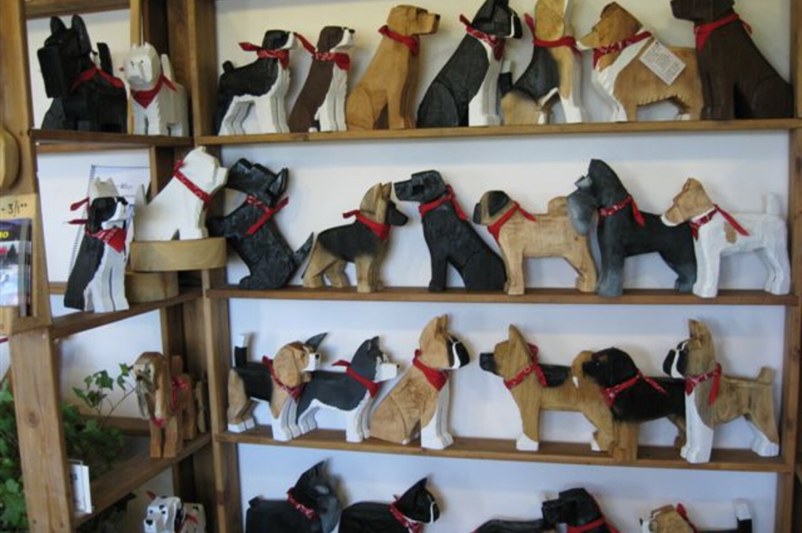 Dennis and Frances, the husband and wife team working at Dog Bark Park since 1997, are also chainsaw artists who carve dogs of every breed. Their work, found all over the house, is also available for purchase in the gift shop, as well as here. If you might be interested in spending some time at the two-bedroom Beagle House (if only to say you did) time is running out! The 2023 season ends on August 7, 2023.