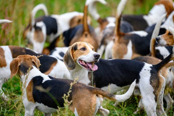These breeds were (and are) among those traditionally used for hunting in packs because, in addition to their scenting skills, these hounds are highly social dogs who work well as a team. While several AKC breed standards mention a hound’s function as a pack dog (the Harrier, Portuguese Podengo Pequeno and Grand Basset Griffon Vendéen, to name three), only one AKC hound breed mentions “levelness of pack” in its standard, and that breed is the Beagle.