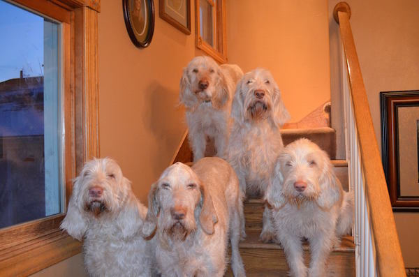 Some posts we write as an excuse to share a photograph that enchants us. In this case, it’s the group shot of Italian Spinoni (the plural version of the name) shared with us by Camkota Spinone back in 2014.